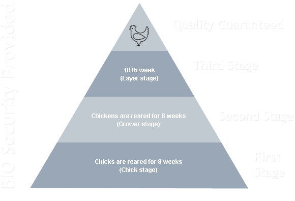 The main objective of Poultry Farm is to Produce Quality eggs and supply for the customers. In three different stages bio security is provided.